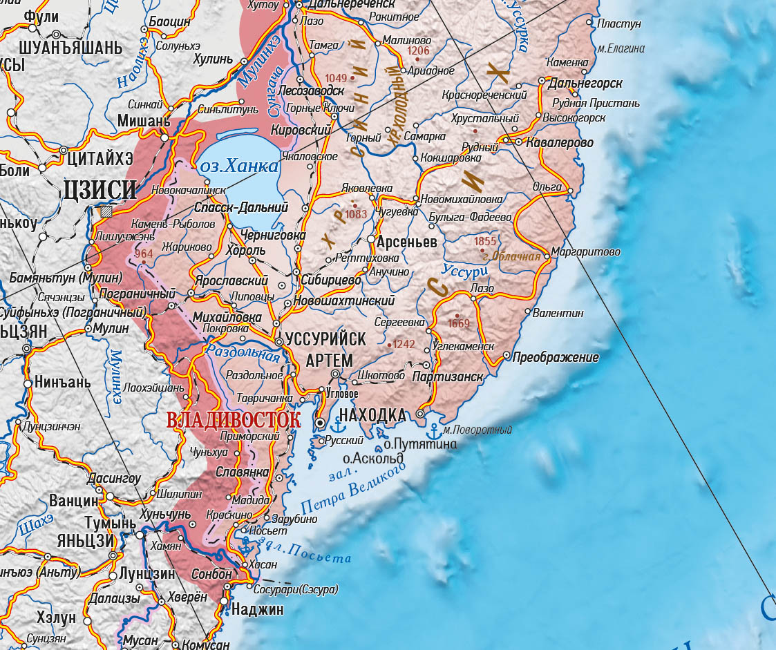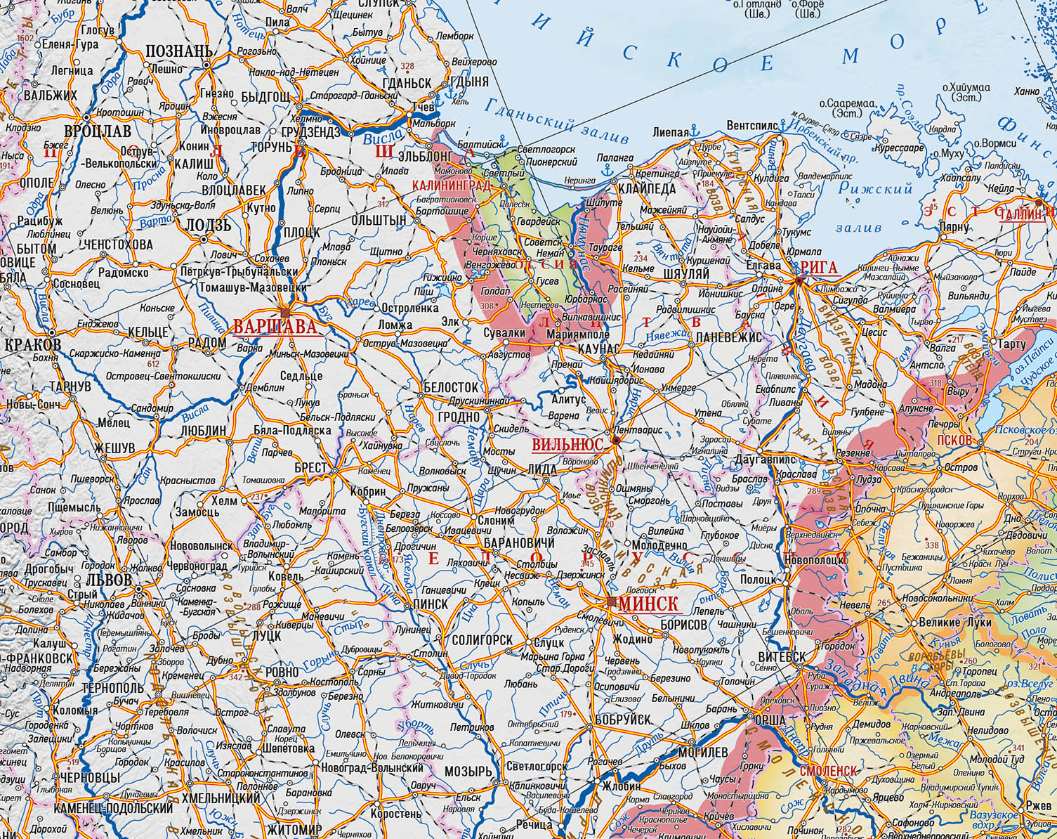 Карта Россия и сопредельные государств. Размер 2.4*1.5