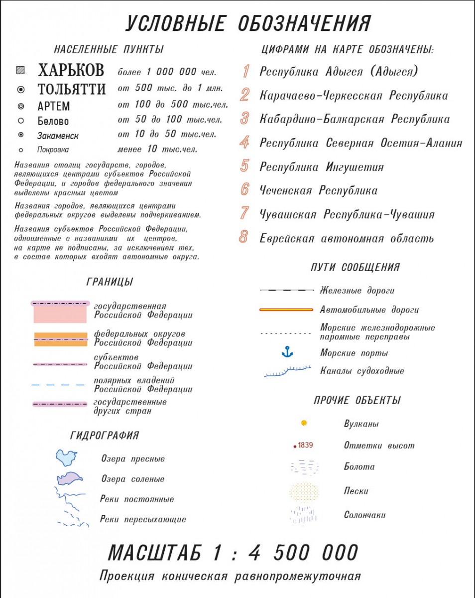 Масштаб: 1 : 4 500 000 (в 1 см - 45 км)